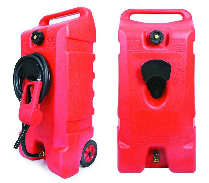Rezervor portabil de 53 de litri, care include orificiul de umplere cu capac cu filet, racordul de evacuare cu furtun de combustibil de 3 m atașat, precum și roțile din cauciuc necesare pentru o manipulare ușoară.