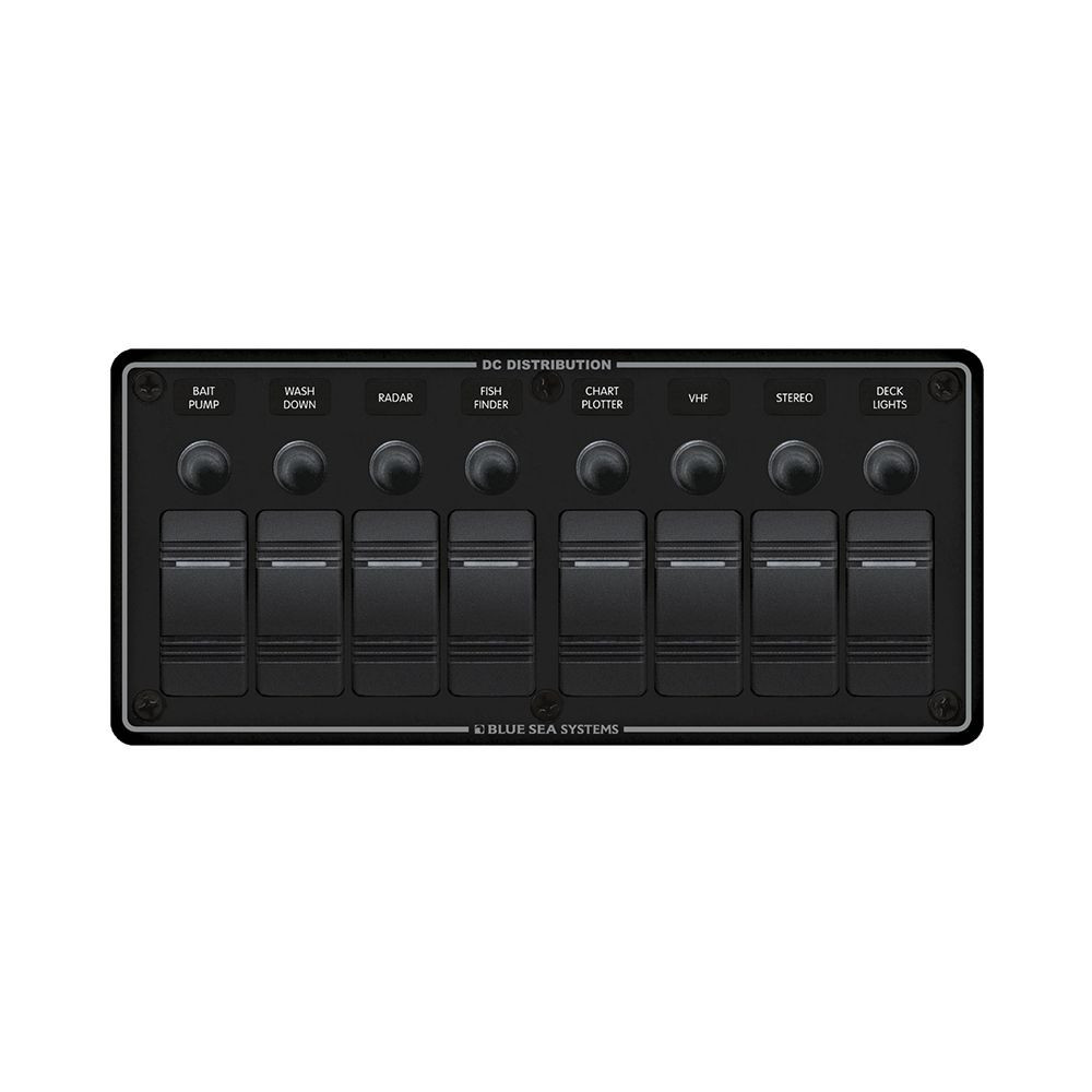 Vízálló kivitelű, kompakt kapcsolótábla beépített LED visszajelzőkkel minden kapcsolóban. Függőlegesen vagy vízszintesen is felszerelhető, kis méretű címkekészlettel együtt szállítva.
