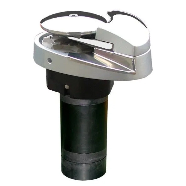 Un troliu de ancorare montat vertical într-o carcasă din aluminiu, potrivit atât pentru lanț, cât și pentru frânghie.