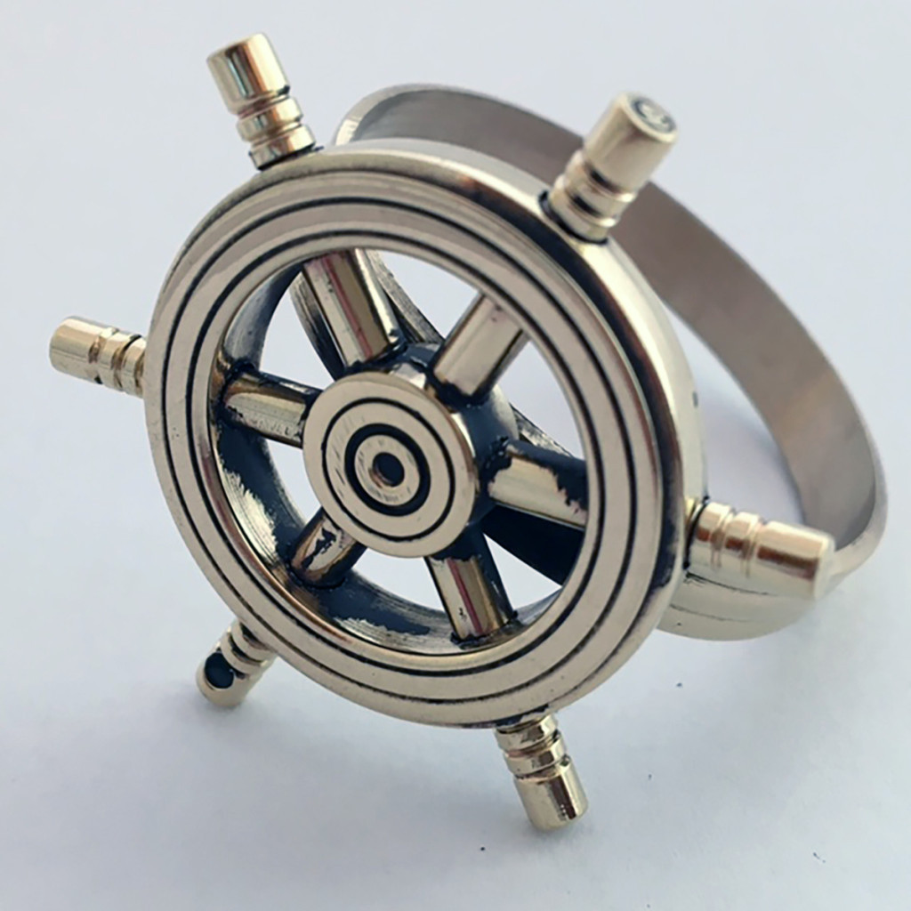 Acest inel de șervețel în formă de cârmă de navă este un accesoriu de masă cu adevărat unic, care va face orice masă specială. Fabricat din cupru, designul elegant se potrivește perfect atât în sălile de mese tradiționale, cât și în cele moderne. Eleganța temei nautice întâlnește caracterul practic, armonizându-se cu toate elementele mesei.